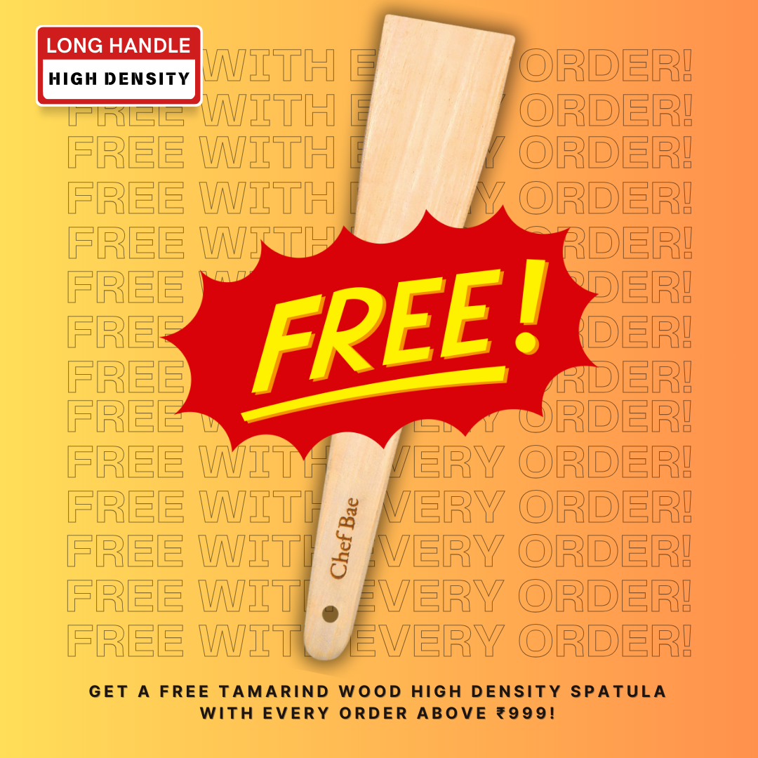 With every order above ₹999, we’re gifting you a FREE High Density Durable Tamarind Wood Spatula(worth ₹149).